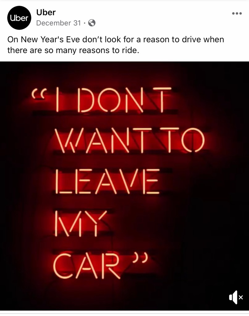 Uber on Facebook and Instagram do have their strong suits though. Although they do not post frequently on Facebook, they do follow the best practice as explained in the article “The Ultimate Best Social Media Practices of 2019” from Bonfire Marketing, of not having a post longer than 80 characters long. They do this exceptionally well on Facebook. None of their posts go beyond more than two sentences and are usually accompanied by a photo. Basically, Facebook is just an extension of their Instagram. It would just be nice if there was some sort of variation between what is posted on the two platforms. Sometimes separation is a good thing. It enables uniqueness.