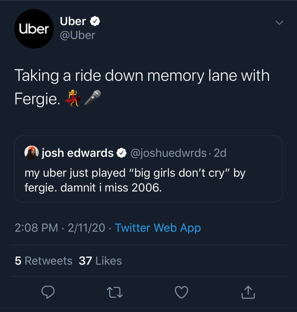 With every major organization, there will come some sort of backlash. It’s inevitable. If you scroll through the comments on any social media platform on any post you will see a collection of horror stories or bad user experiences from Uber patrons. However, they handle it exceptionally well with any curve ball that comes their way. The responses to these comments are never replied to in anger or animosity. They all have a calm approach that usually starts with an “Oh we’re sorry that happened to you” and ends with “check your inbox, we have someone reaching out to you right now.” In a situation that can be tension-filled, even on the internet, Uber always takes the high road and comes off like a calm, cool, and collected professional. If you want to keep your followers, it’s not beneficial to come off as anything less.